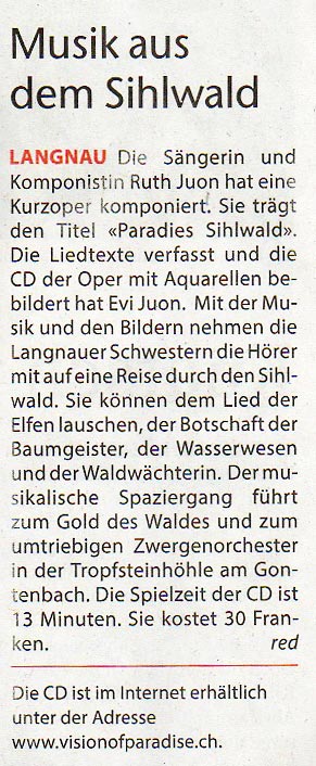 CD Paradies Sihlwald mit Ruth Juon und Evi Juon - Zürichsee-Zeitung 2018